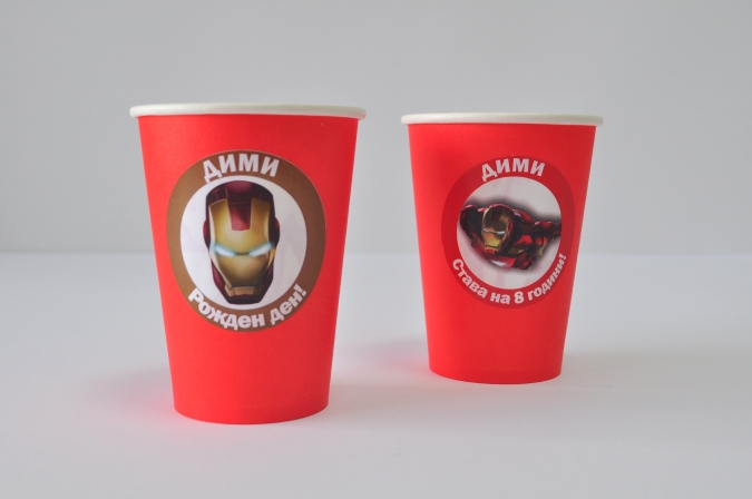 Персонализирана хартиена парти чашка 250 мл Железния човек, 6бр. пакет