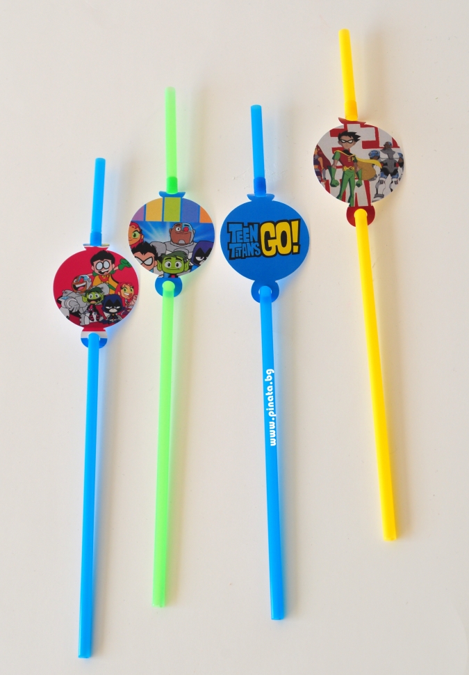 Парти сламки с облър Малките Титани, 10 бр. в пакет