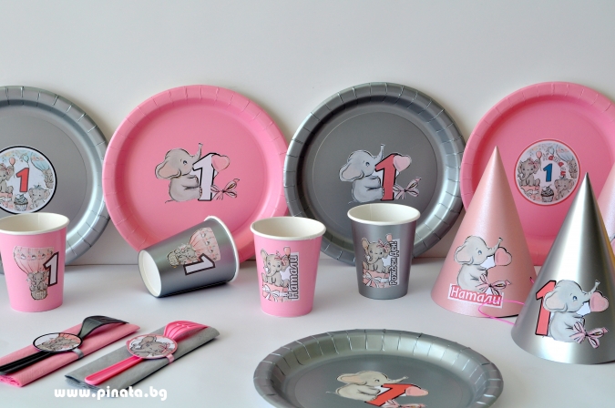 Персонализирана хартиена парти чашка 250 мл Бебе Слонче рожден ден, 6бр. пакет