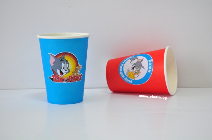 Персонализирана хартиена парти чашка 250 мл Том и Джери, 6бр. пакет