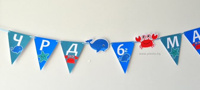 Персонализиран банер Честит Рожден Ден Морско дъно, с включени 2 бр. фигури бонус