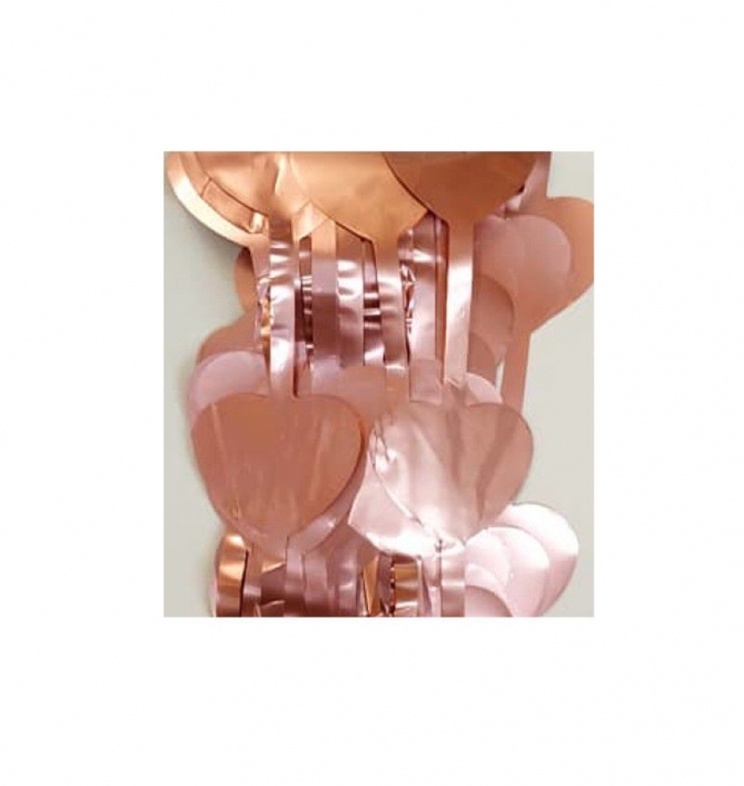 Ресни за декорация във форма на сърца /ПВЦ/ лъскави, цвят розово злато 100х180см