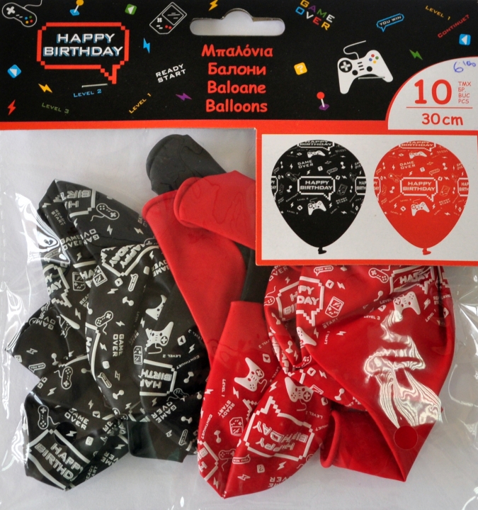 Комплект 10 бр. латексови балони Плейстейшън, джойстик, игра в цвят червено и черно /mb/