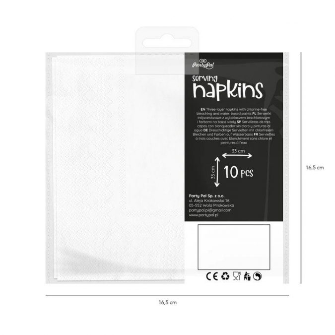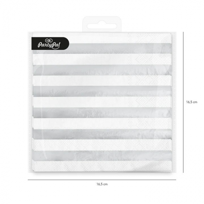 Луксозни салфетки бяло и сребърно бляскаво райе, 10 бр в пакет /Pp/