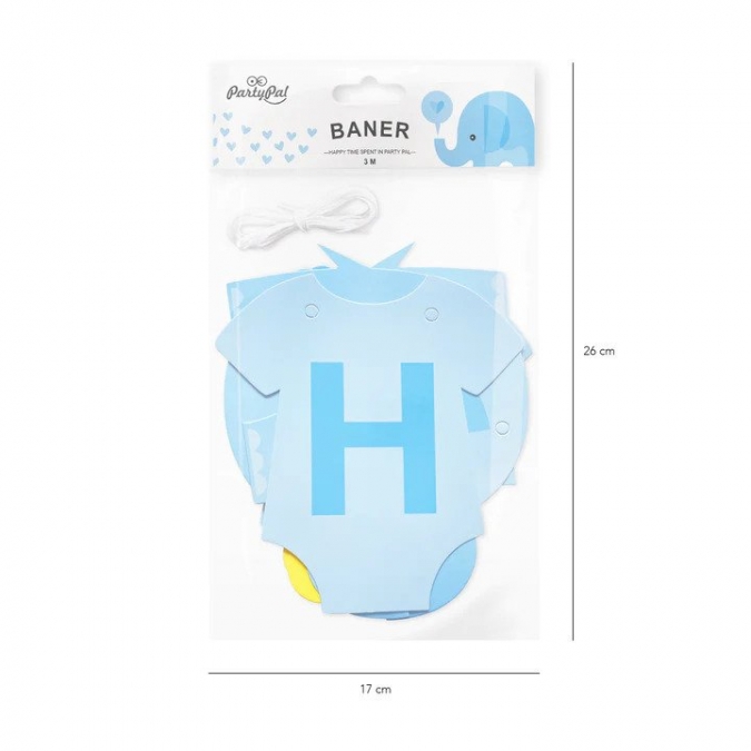 Банер гирлянд , честито бебе, момче, синьо слонче 3,00 м дължина /Pp/