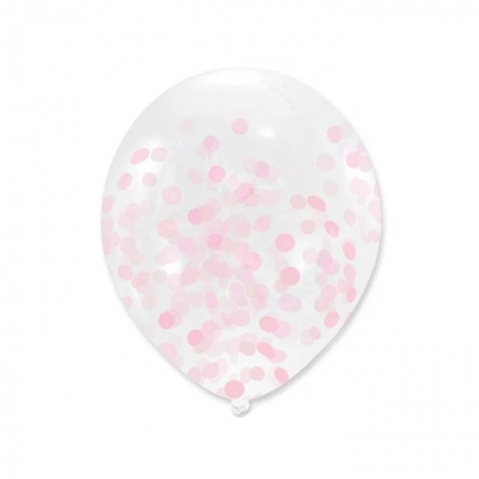Комплектът съдържа: 10 бр. прозрачни балони с розови конфети с диаметър 30 см.