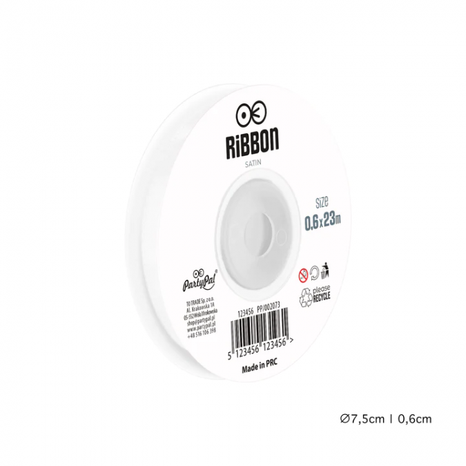 Сатенена лента, цвят бял, 0,6х23м /Pp/